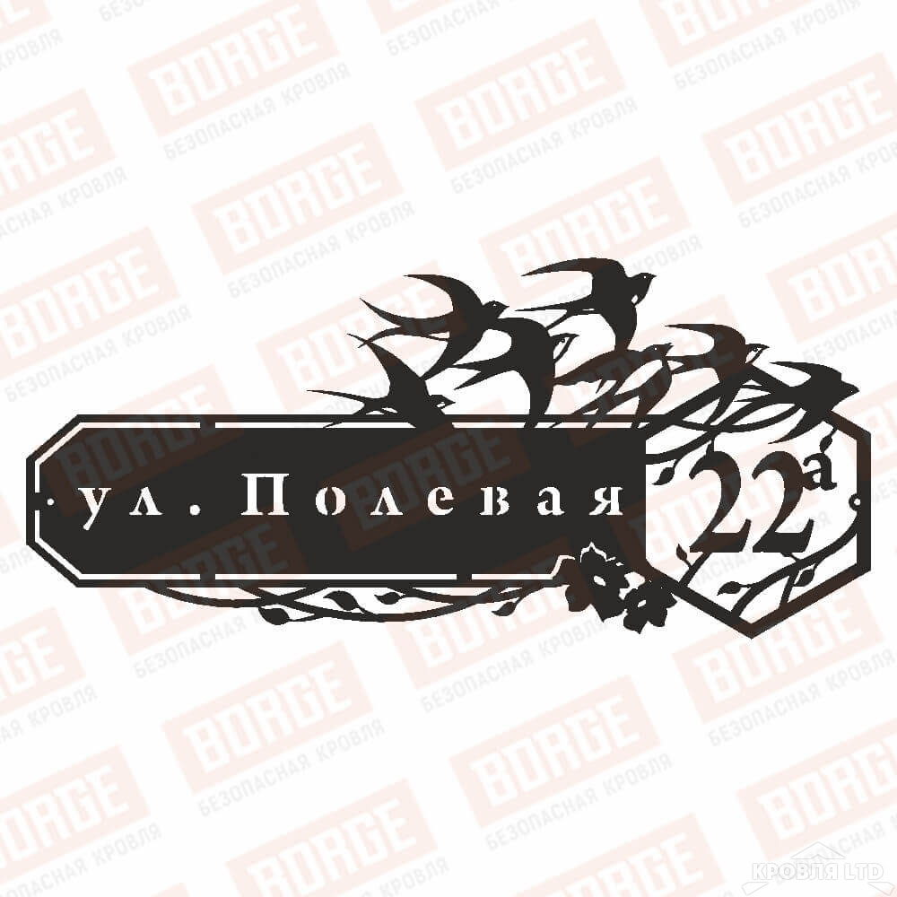 Табличка адресная BORGE Ласточки, 800x361мм, чёрный (RAL 9005)